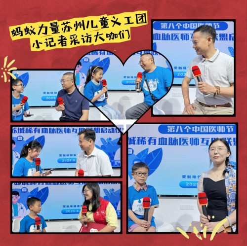 活动尾声,蚂蚁力量苏州儿童义工团的小记者们格外活跃,他们带着小朋友心中对“生命守护”的好奇,主动走上前,采访了六位医护人员和爱心企业代表。稚嫩的提问里藏着对医者仁心的敬佩、对爱心行动的好奇,为这场公益行动增添了一份童真的温度。