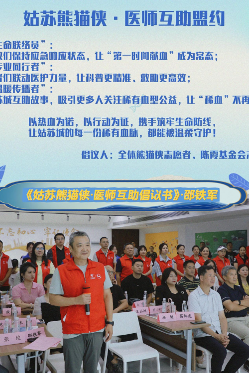 2025年8月17日下午,“致敬医者仁心·凝聚熊猫力量——第八个中国医师节特别行动”在苏州市姑苏区爱髄缘健康驿站3楼多功能厅温情启幕。这场由多方公益力量联动发起的活动,以医师节为契机,聚焦稀有血型(Rh阴性血,俗称“熊猫血”)群体救助需求,正式启动“苏城稀有血脉医师互助联盟”,用“专业护航+民间热血”的融合之力,织密生命守护网。