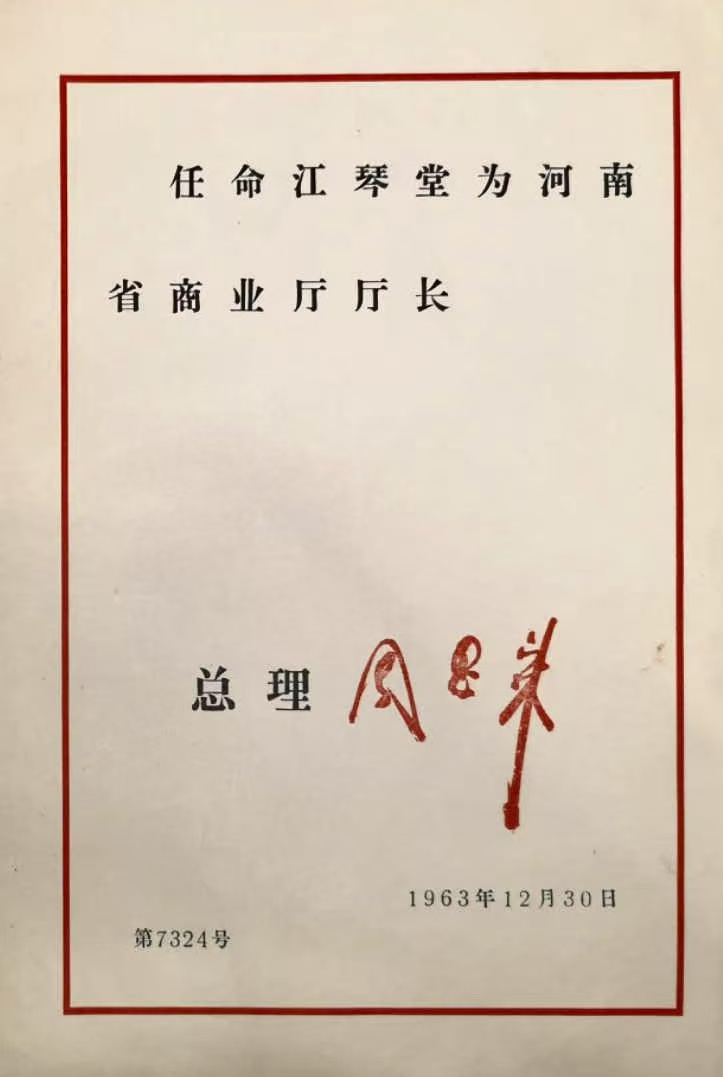 在河南工作的数十年间,江琴堂同志历任多个重要领导职务,足迹遍布多地,功绩卓著。他先后担任中共密县县委书记,中共郑州地委宣传部长、副书记、专署专员,洛阳矿山机械厂筹建处主任、第一副厂长,河南柴油机厂(407 厂)党委书记,中共洛阳市委书记处书记兼市长,河南省商业厅长,中共郑州工学院党组书记、院长等职。作为洛阳重工业两大骨干企业的奠基人,他宵衣旰食、攻坚克难,为河南工业体系的建立与完善、洛阳工业的崛起奠定了坚实基础;担任地方领导职务时,他心系民生、勤勉务实,积极推动地方经济社会发展,让群众的生活日益改善。